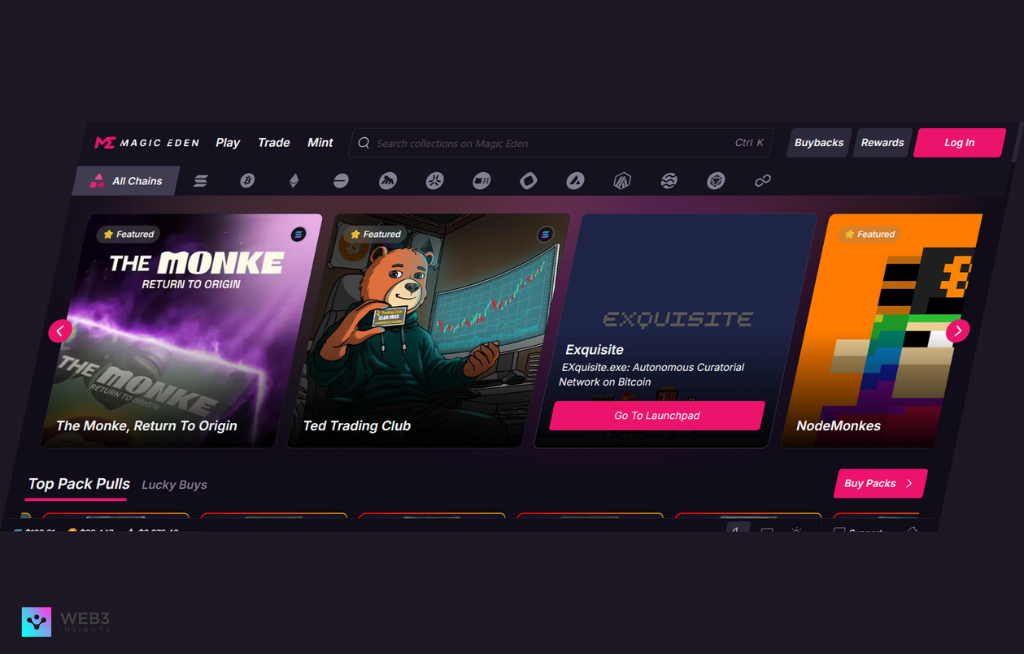 The marketplace is particularly popular for gaming NFTs, community-driven collections, and creator launches. With low fees, strong community engagement, and high trading volume on non-Ethereum chains, Magic Eden continues to be a major force in the NFT space.